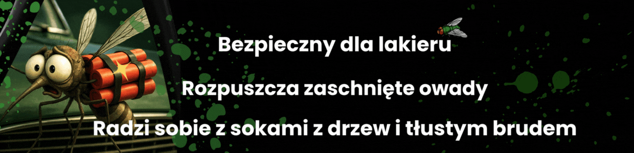 Preparat do usuwania owadów z karoserii samochodowej, skuteczny na zaschnięte resztki insektów, brud drogowy i tłuste zanieczyszczenia. Bezpieczny dla lakieru i plastików, gotowy do użycia, bez zbędnego rozcieńczania.